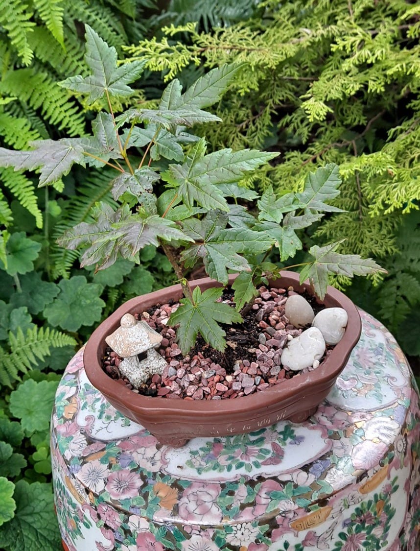 First of all, any tree in any size pot is considered to be a bonsai. And those of us who have done any reading at all know how important good drainage is to a bonsai. But it goes deeper than that when the bonsai is a Japanese maple. Acer palmatum (botanical name for these loveliest of trees) can withstand quite a bit of water as long as the soil is well drained. They like consistent water, though. And one can hardly argue that the “watering” certainly has been consistent around here these last few months.